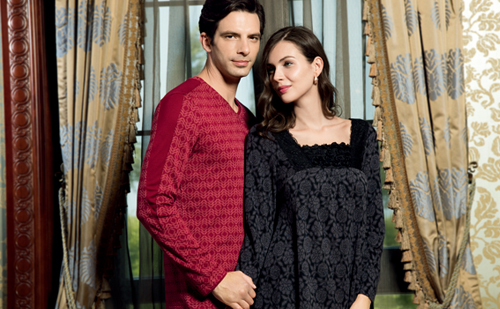 夜巴黎系列 P271301 男提花V領(lǐng)拼接睡衣套裝 P281312 女提花方領(lǐng)睡衣套裝