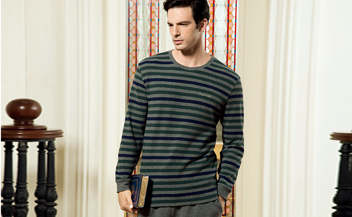 P271321 男彩條圓領(lǐng)睡衣套裝