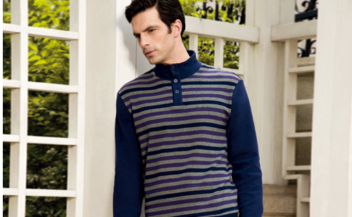 P271322 男彩條小立領(lǐng)睡衣套裝