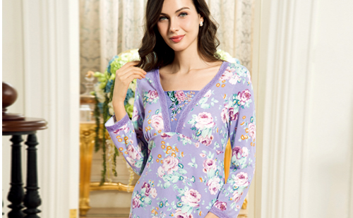 P281309 女印花圓領(lǐng)開襟睡衣套裝
